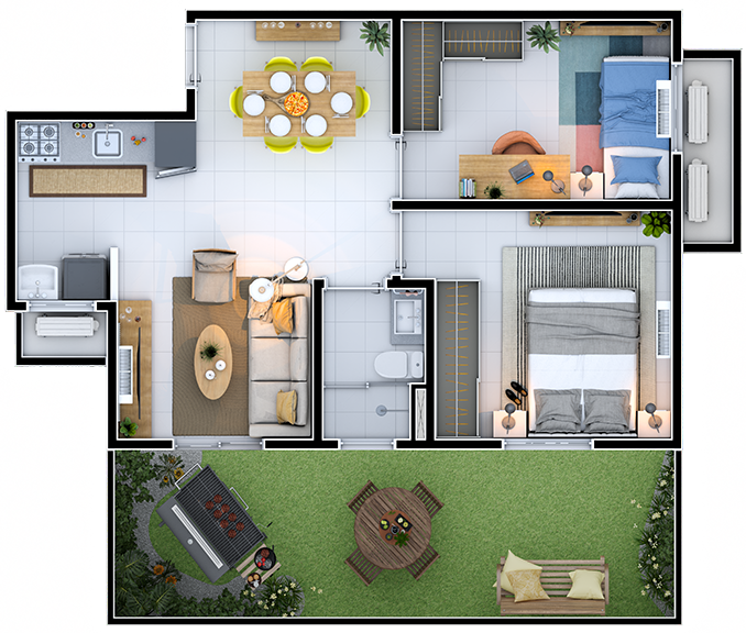 Exemplo Apartamento 2 dorms. Garden